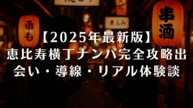 出会い 【2025年最新版】恵比寿横丁ナンパ完全攻略ガイド|出会い・導線・リアル体験談 恵比寿横丁で出会いを掴みたい20代社会人向けに、営業時間・混雑時間・おすすめの座席・声かけフレーズ・二次会導線までリアル体験ベースで解説します。 2025.11.27 出会い